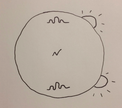 “This is your flat earth. Those two rippled marks are shining cities, perched across the world from one another. Can you picture it?” The figure was conceptual, more or less. “The direction North, on a flat earth, is at the center of the disk. Do you see?”